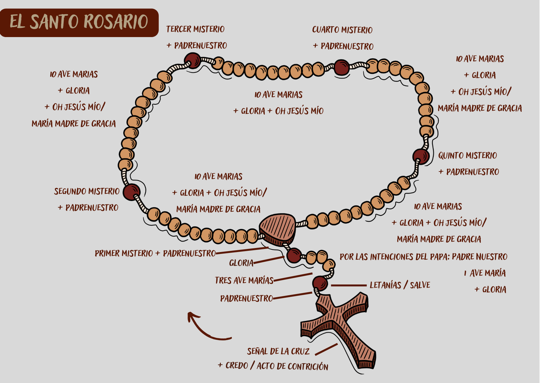 En este enlace encontrarás más información sobre el rezo del rosario (los misterios, las oraciones principales, las oraciones adicionales y más).